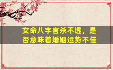 在 🍀 八字命理中,"官"杀,不,透确实 🐈 常被用来分析女性的婚姻运势但需要结合全局综合判断不可单一而论。以下是 🐛 详细解析: