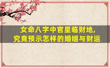 在八字命理中,"女命"官,星临财地是一个重要的分析点需要结 🍁 合官星和财星的五行生克、位置关系以及整体格局来 🐳 综合判断以。下是具体解析: