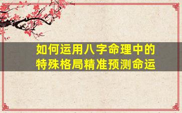 运用八字 🐯 命理中的特殊格局进行精准预测,需,结合理论框架与实践经验以下为系统化的方法论: