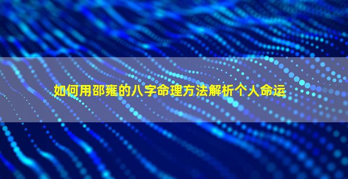 邵雍(字尧夫,谥号康 🦊 节)是北宋著名理学家、易,学家其八字命理方法主要体现于《皇极经世》和《梅》花,易,数中虽未直接系统论述八字命理但其思想体系对后世命理学影响深远。以,下结合邵雍的易学思想和传统子平八字方法出一套具有邵雍特色的解析逻辑: