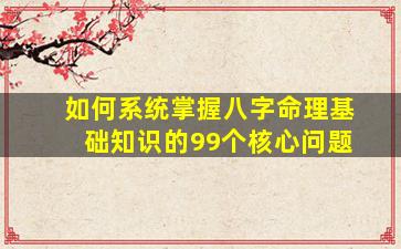 要系统掌握八字命理的基 🐛 础知识,建议从核心概念、逻辑框架和实 🐡 践应用三个维度逐步深入。以下是按学习阶段整理的个核心99问,题分类并附学习路径建议 🐞 :