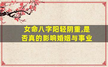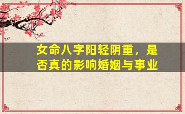 在传统八字命理学中,"阳"轻阴重通常指女性八字中阴性能量(如地支藏干、五行属性等)较,为突出而阳性能量相对较弱。这,种命,局。是否对婚姻和事业产生影响需结合具体命盘综合分析不 🦊 可一概而论以下是关键要点: