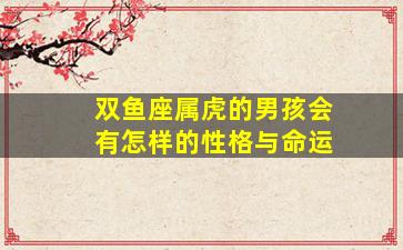 根据占星学和生肖文化的结合,双鱼座属虎的男孩可能会呈现出以下性格特点和命运趋势(需注意,这些分析仅为娱乐参考,个人成长受多重因素影响):