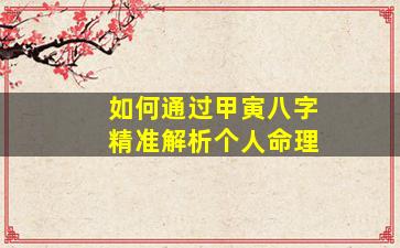 通过甲寅八字(四柱命理)精准解析个人命理,需结合天干地支、五行生克、十神关系、大运流年等要素进行系统分析。以下是分步骤的解析方法: