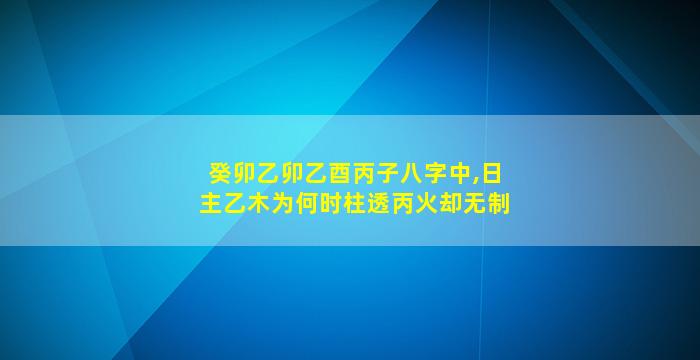 在分析“癸卯 乙卯 乙酉 丙子”这个八字时,日主乙木生于卯月(仲春),木气旺盛,属于建禄格。时柱丙火透出却无制,可以从以下几个角度理解: