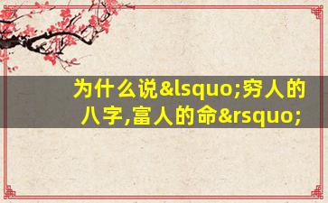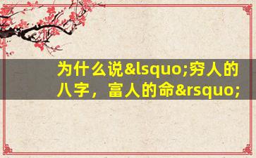 “穷人的八字,富人的命”是一句带有讽刺意味的俗语,反映了社会现实中财富与机遇分配的不公。其含义可以从以下几个角度理解: