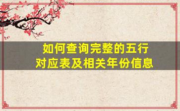 查询五 🐎 行对应表及相关年份信息,可,通过以下途径获取完整准确的数据并结合传 🐺 统历法进行 🐋 解读:
