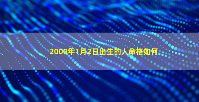 根据命理学(如八字、紫微斗数等),2000年1月2日出生的人命格分析如下(需结合具体出生时间,此处默认子时,按农历1999年计算):