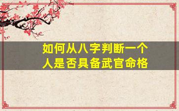 从八字命理角度判断一个人是否具备武官命格(如军人、警察、武术家等),需结合五行生克、十神组合、神煞、格局等多方面因素综合分析。以下是具体方法和核心特征: