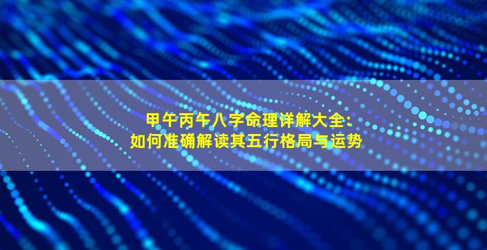 以下是针对“甲午丙午”八字的命理详解,涵盖五行格局、十神配置及运势分析,帮助您系统理解这一特定组合的命理特点:
