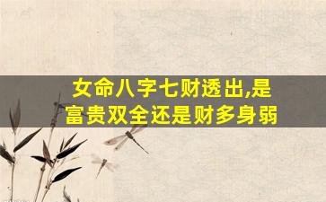 在八字命理中,“女命七财透出”是否代表富贵双全或财多身弱,需结合整体命局综合分析,不可单凭财星数量直接论断。以下是关键分析要点: