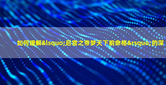如 🐳 何理解‘后宫之帝梦天下前命格’的深层含义